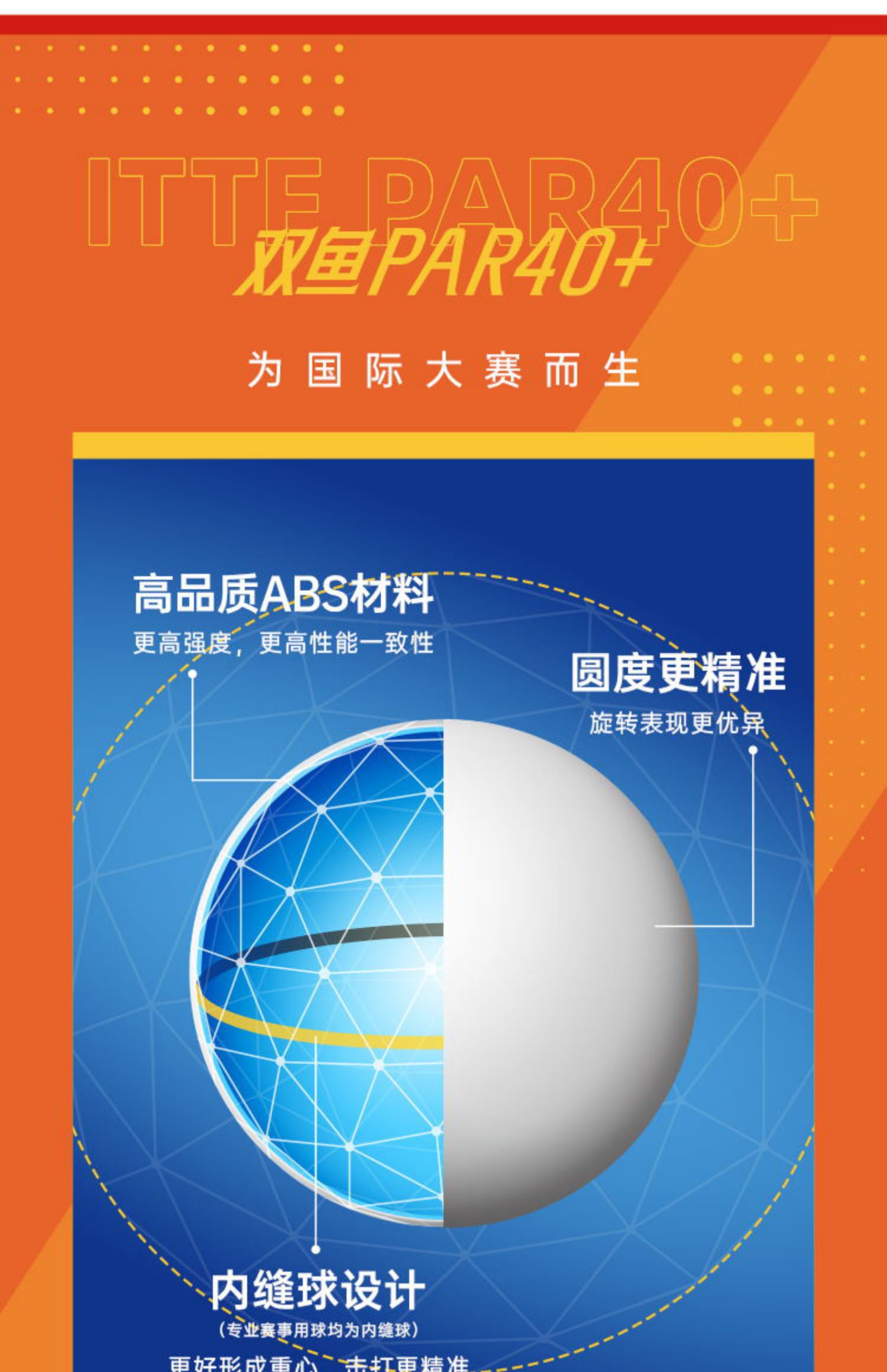 双鱼V40+展翅三星乒乓球WTT大赛全运会用球三星球3星ppq乒乓球