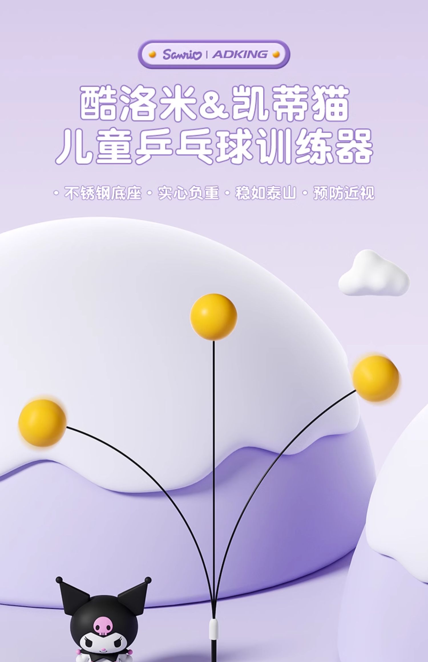 库酷洛米正品乒乓球儿童训练器兵乓自练反弹板室内兵兵球练习神器