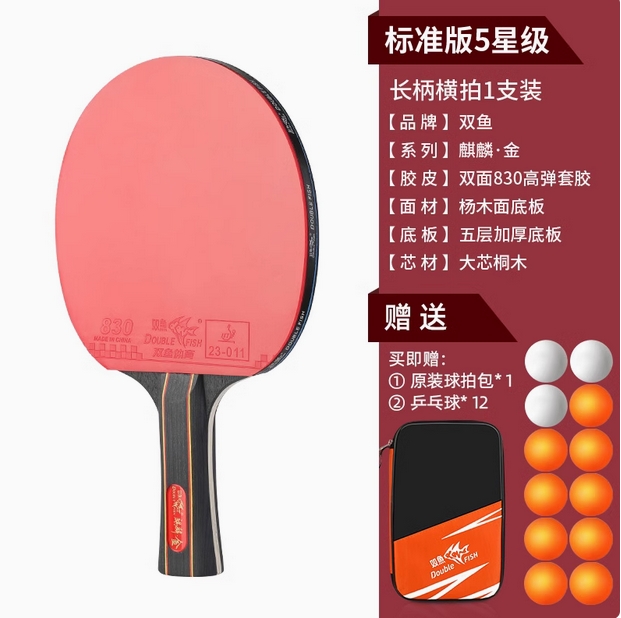 双鱼乒乓球拍正品旗舰店儿童学生初学者横拍高弹力专业级兵乓球拍
