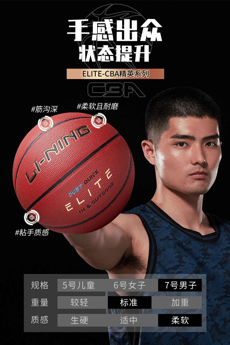 李宁篮球7号男CBA专用室内外耐磨手感之王专业20K比赛蓝球957礼物