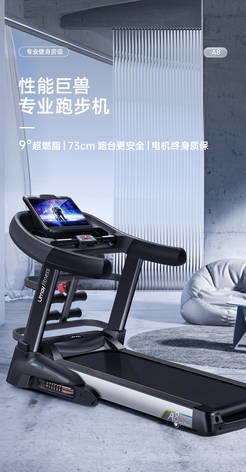 佑美A8跑步机家用款健身房专用可折叠超静音爬坡机女室内大型男士