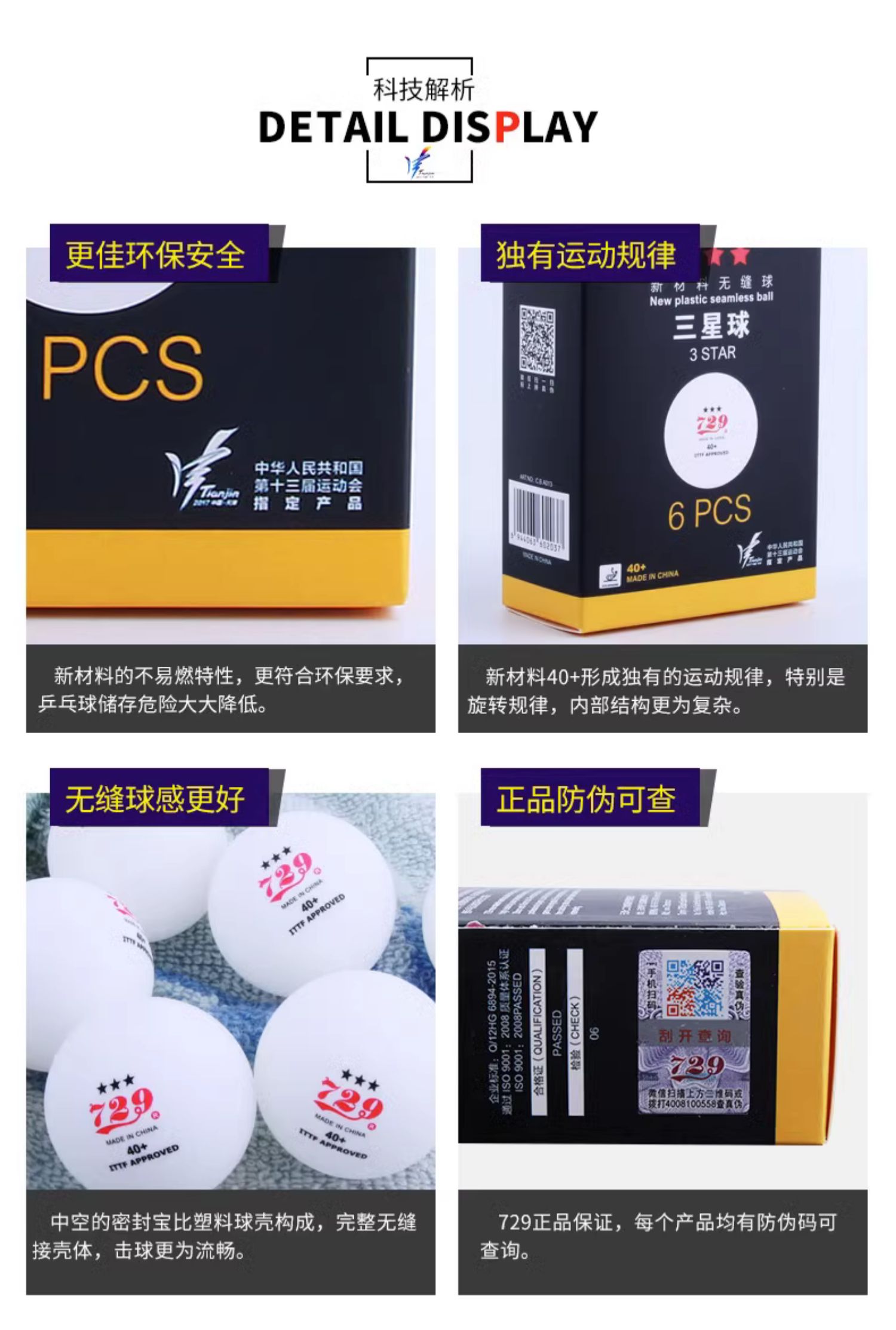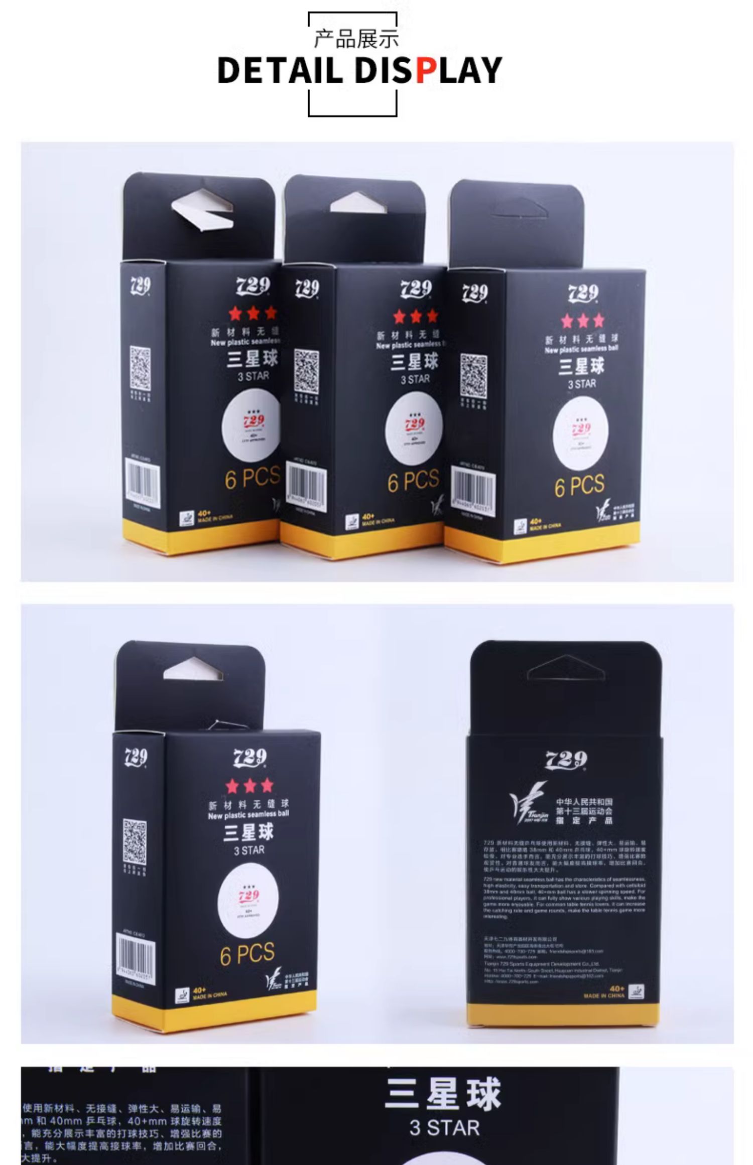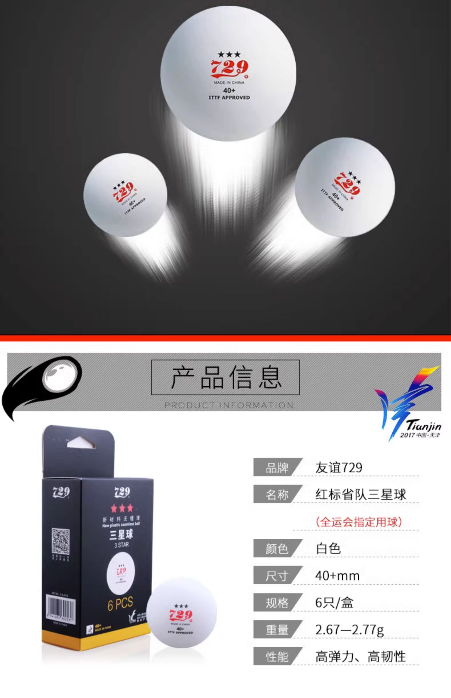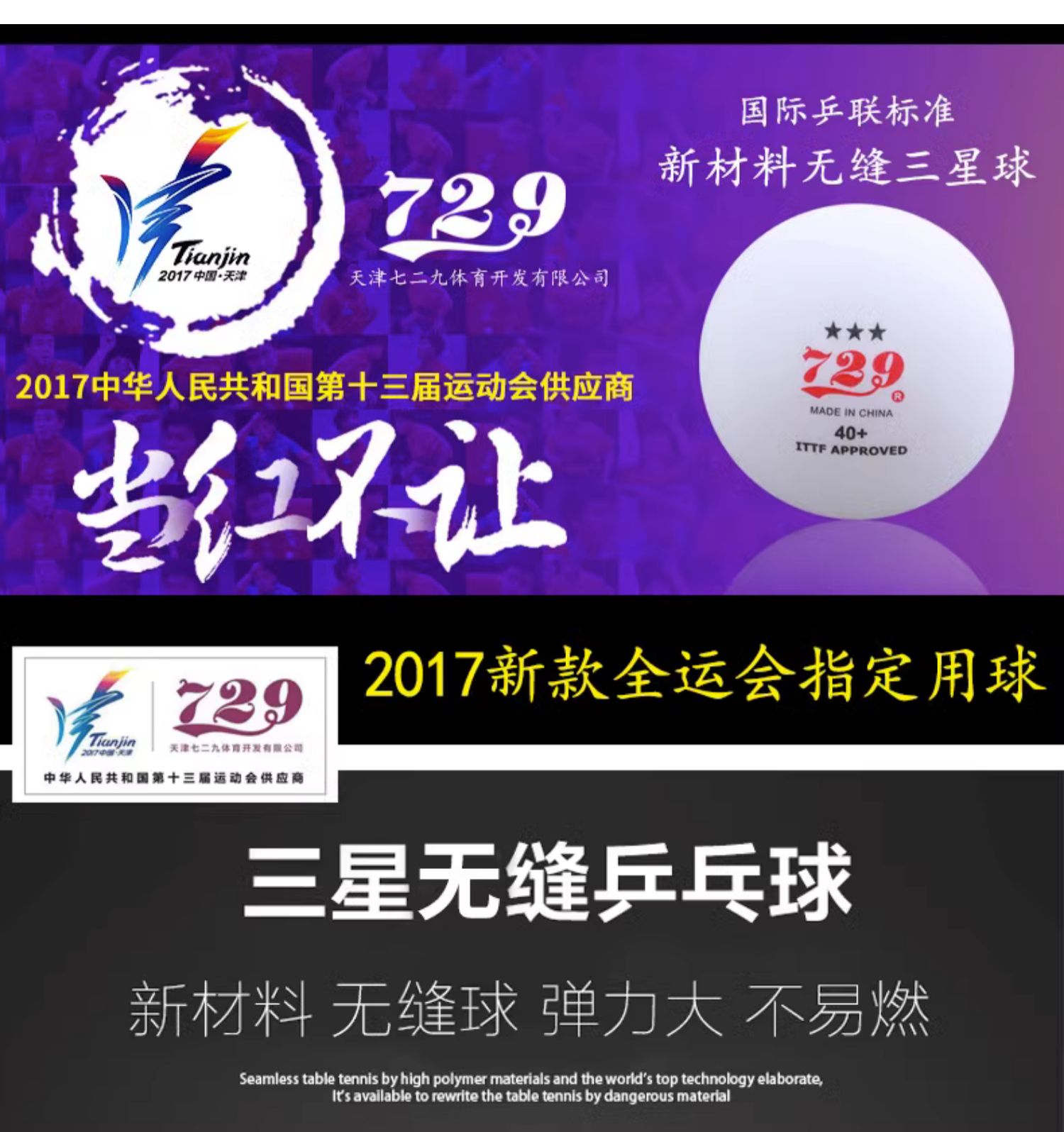 729乒乓球三星级红标省队全运会训练比赛用球无缝40新材料3星40+