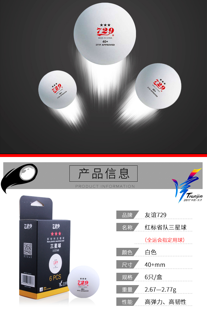 729乒乓球三星级红标省队全运会训练比赛用球无缝40新材料3星40+