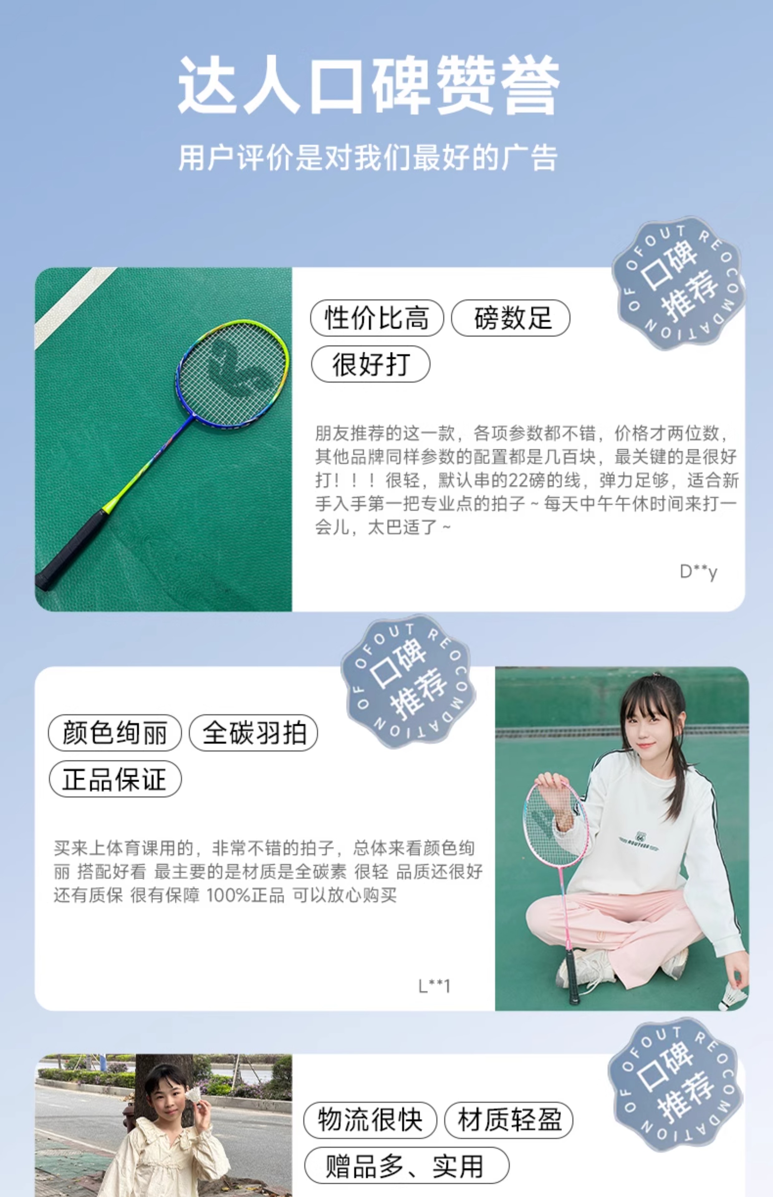 克洛斯威羽毛球拍正品旗舰店全碳素纤维超轻专业耐打双拍儿童套装