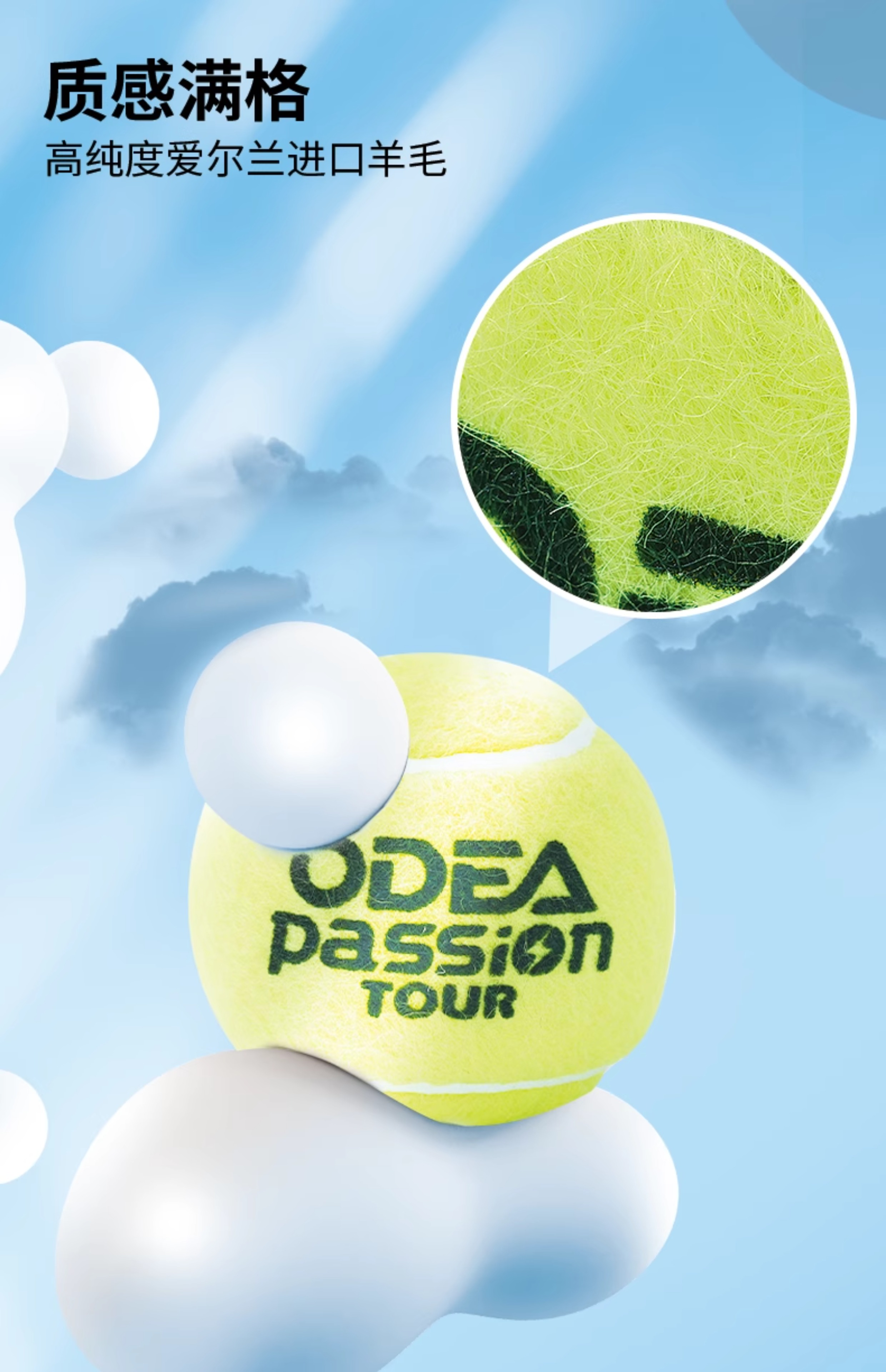 ODEA欧帝尔网球Passion有压比赛球高回弹耐打练习训练4粒罐装网球