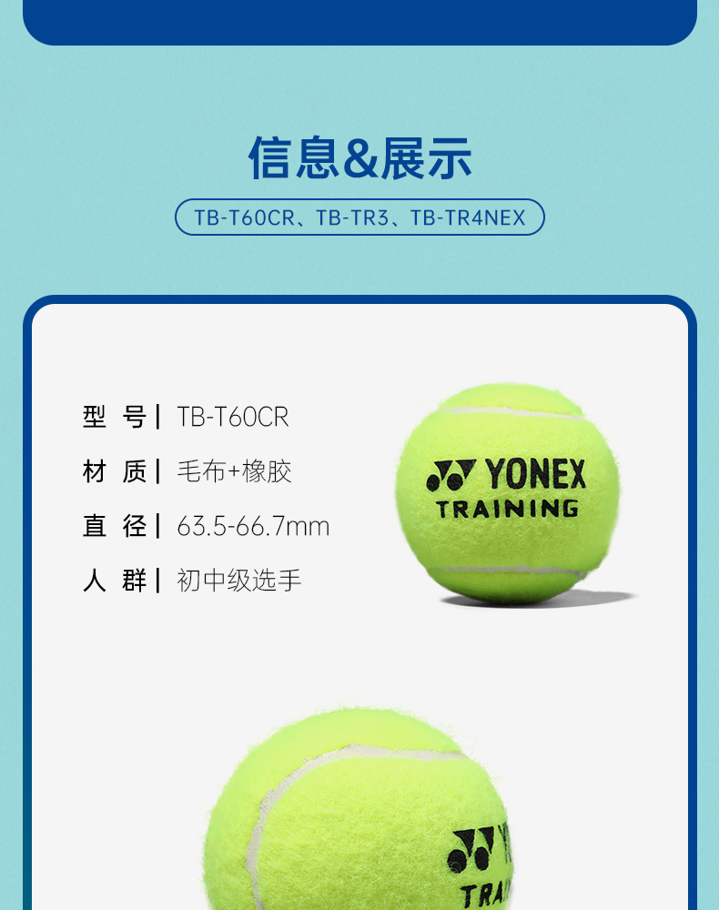 YONEX尤尼克斯网球yy训练比赛用球袋装散装3颗耐磨高弹性TB-TNGEX