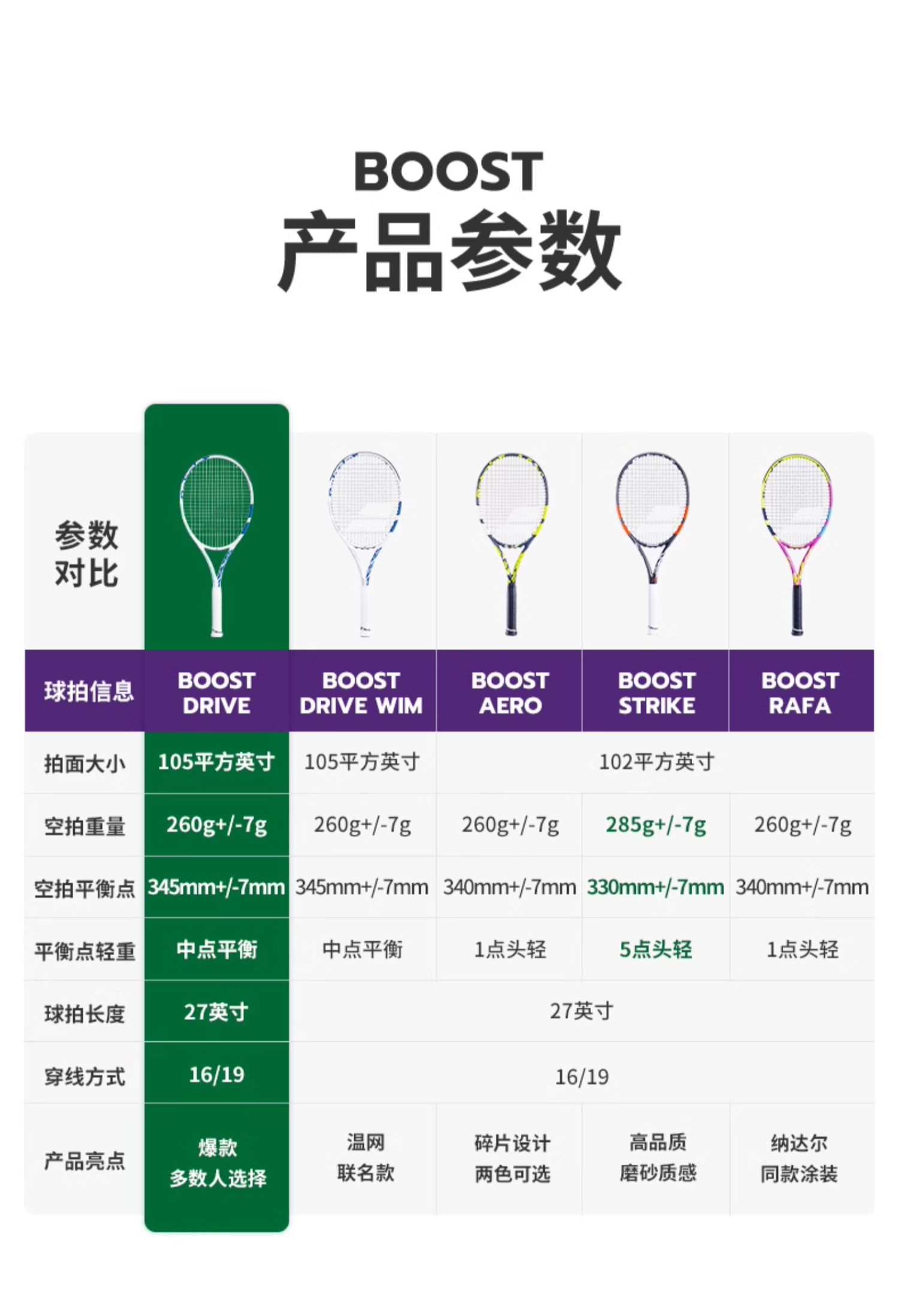 Babolat百保力官方boost男女全碳素轻量学生百宝力初学进阶网球拍