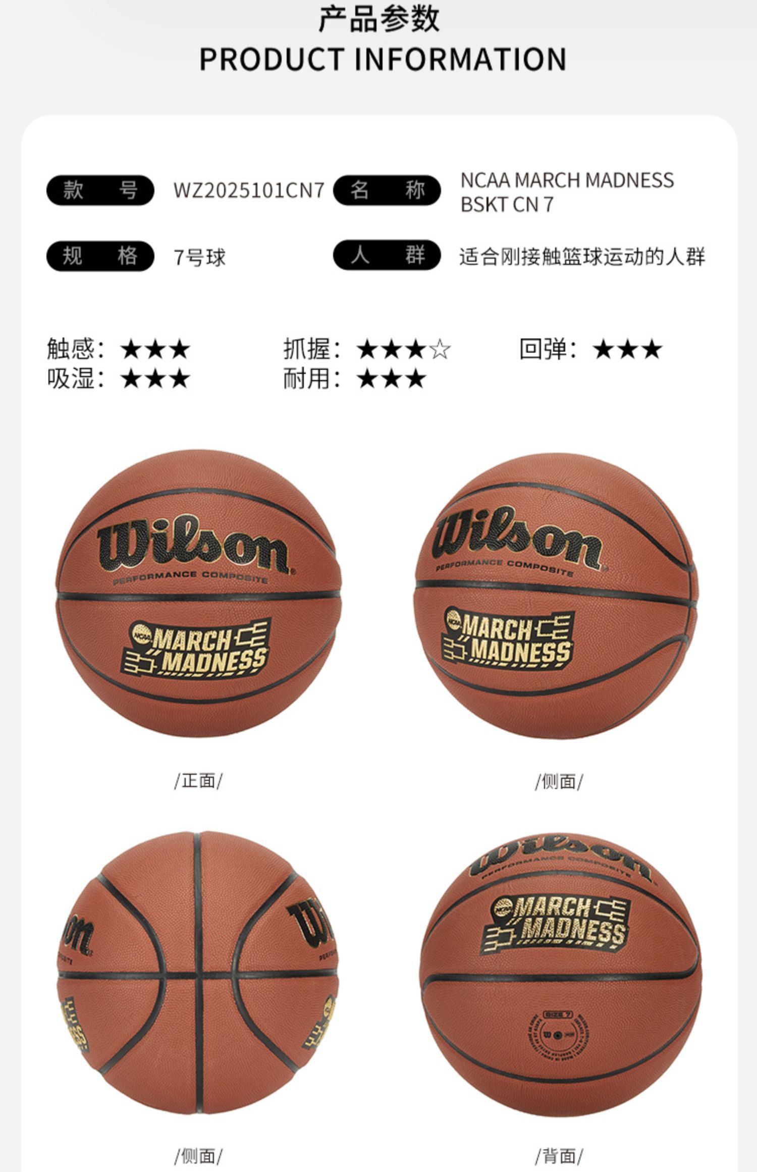 Wilson威尔胜官方NCAA专业赛事实战室内外通用大学生成人7号篮球