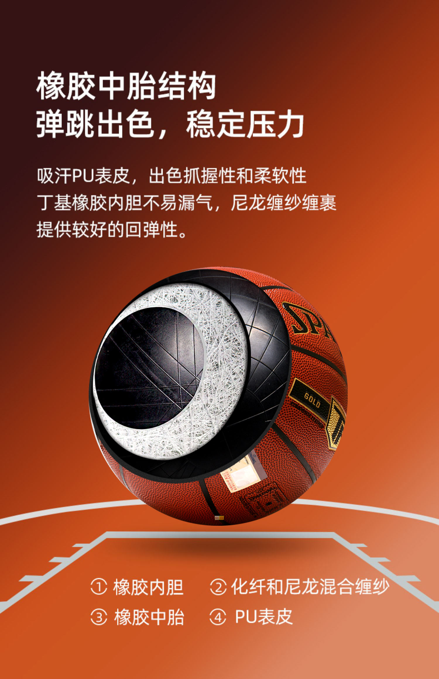 斯伯丁篮球官方正品 耐磨室外成人学生比赛专用7号真皮牛皮手感PU
